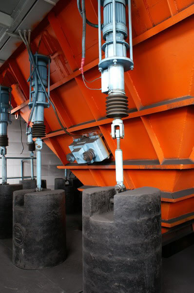 采用整體式砝碼,砝碼的升降采用電動(dòng)提升機(jī)、操作方便。